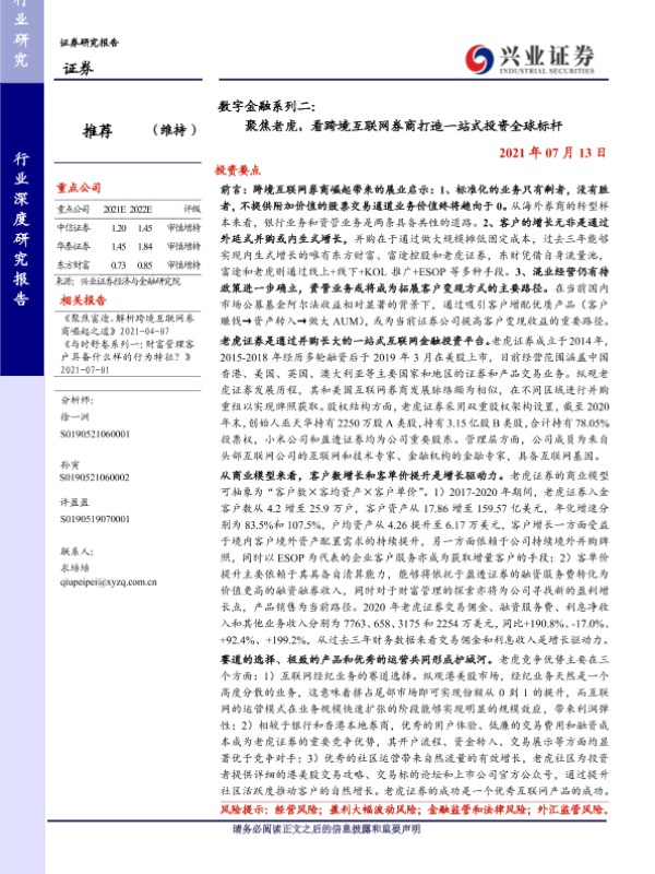 【兴业证券】【20210713】数字金融系列二:聚焦老虎,看跨境互联网券商打造一站式投资全球标杆-24页 行业研究