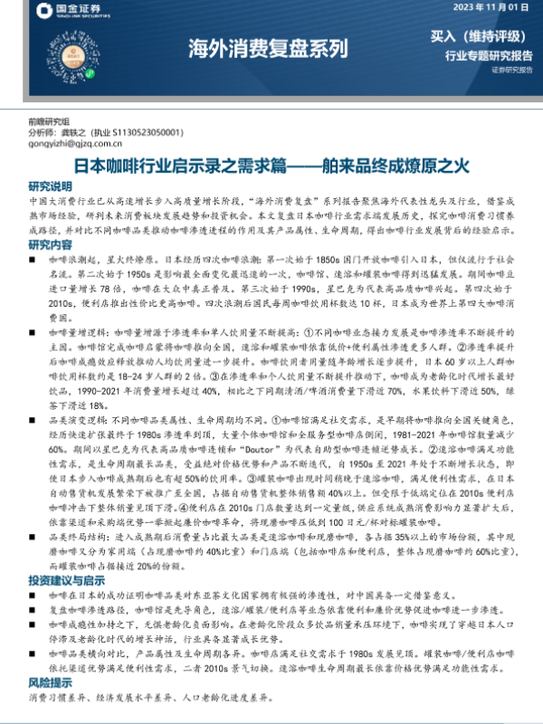 【国金证券】【20231101】海外消费行业复盘系列:日本咖啡行业启示录之需求篇,舶来品终成燎原之火-21页 行业研究