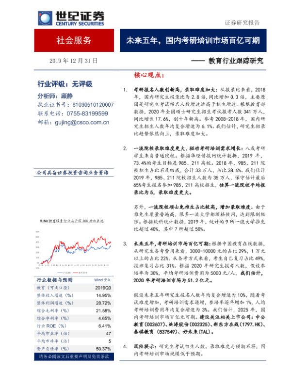 【世纪证券】【20191231】未来五年,国内考研培训市场百亿可期-9页 行业研究