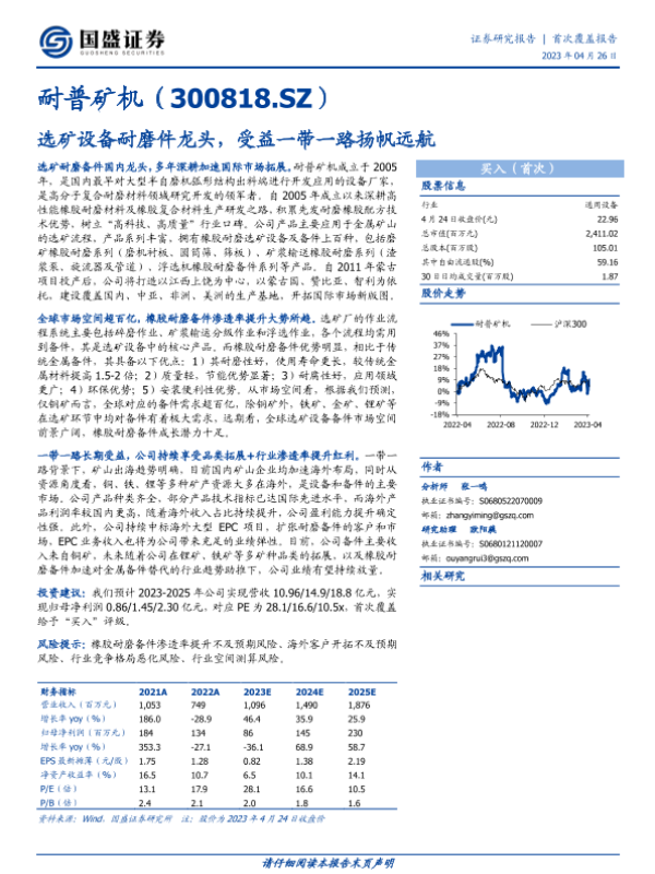 【国盛证券】【20230426】耐普矿机-选矿设备耐磨件龙头,受益一带一路扬帆远航-25页 行业研究