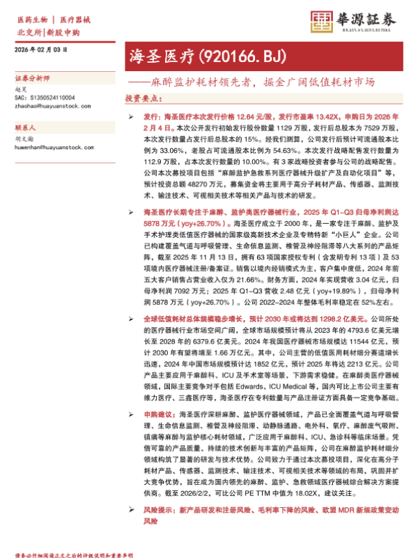 【华源证券】【202602】麻醉监护耗材领先者,掘金广阔低值耗材市场-20页 证券期货研究报告