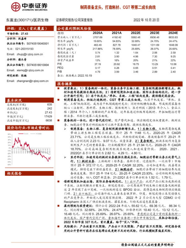 【中泰证券】【20221020】20221020-中泰证券-东富龙-300171.SZ-制药装备龙头,打造耗材、CGT等第二成长曲线-23页 行业研究
