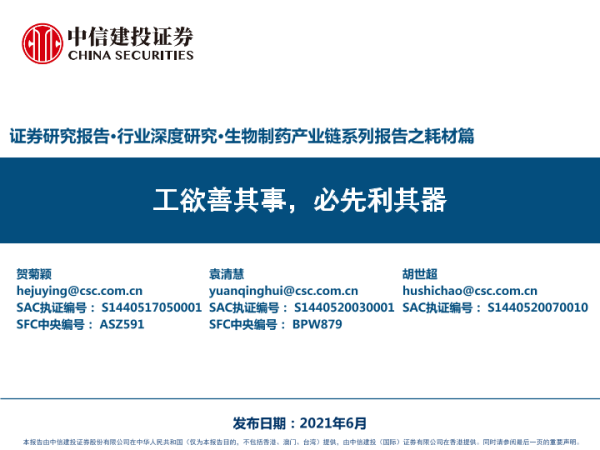 【中信建投证券】【202106】生物制药产业链系列报告之耗材篇:工欲善其事,必先利其器-76页 行业研究