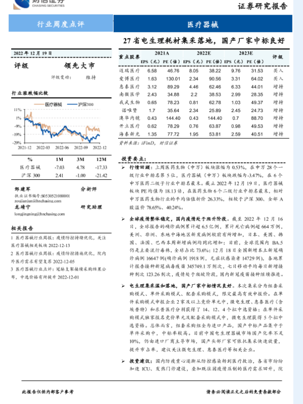 【财信证券】【20221219】27省电生理耗材集采落地,国产厂家中标良好-11页 行业研究