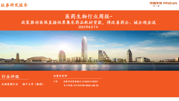 【平安证券】【20230807】医药生物行业周报:政策推动医保直接结算集采药品耗材货款,将改善药企、械企现金流-11页 行业研究