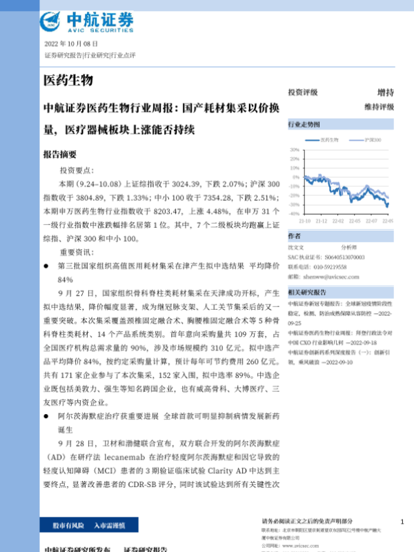 【中航证券】【20221008】国产耗材集采以价换量,医疗器械板块上涨能否持续-18页 行业研究