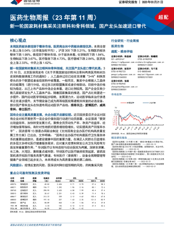 【国信证券】【20230321】新一轮国家耗材集采关注眼科和骨科领域,国产龙头加速进口替代-13页 行业研究