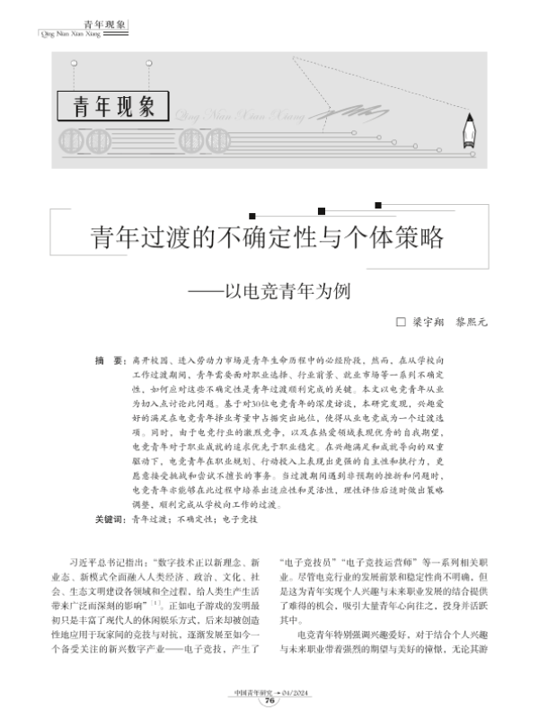【中国青年研究】【20240401】青年过渡的不确定性与个体策略—以电竞青年为例-9页 行业研究