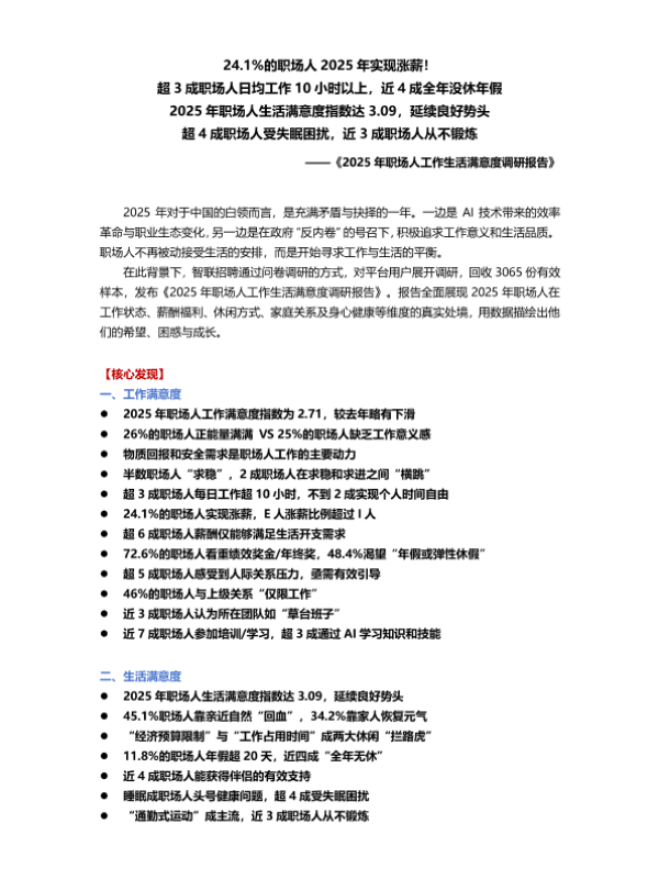 【智联招聘】【2025】2025年职场人工作生活满意度调研报告-19页 市场调研
