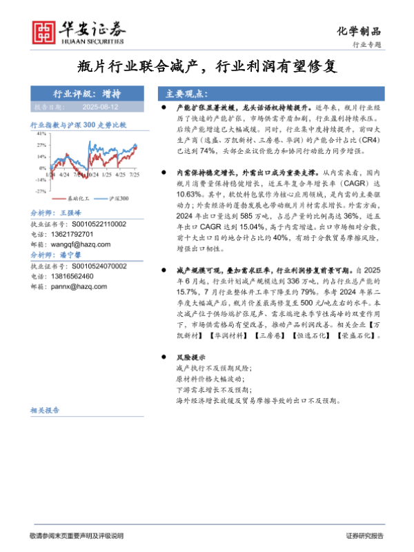 【华安证券】【20250812】化学制品行业专题:瓶片行业联合减产,行业利润有望修复-20页 行业研究