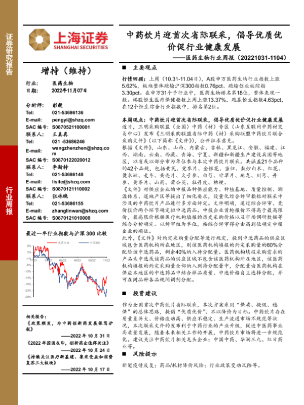 【上海证券】【20221107】医药生物行业周报:中药饮片迎首次省际联采,倡导优质优价促行业健康发展-29页 行业研究