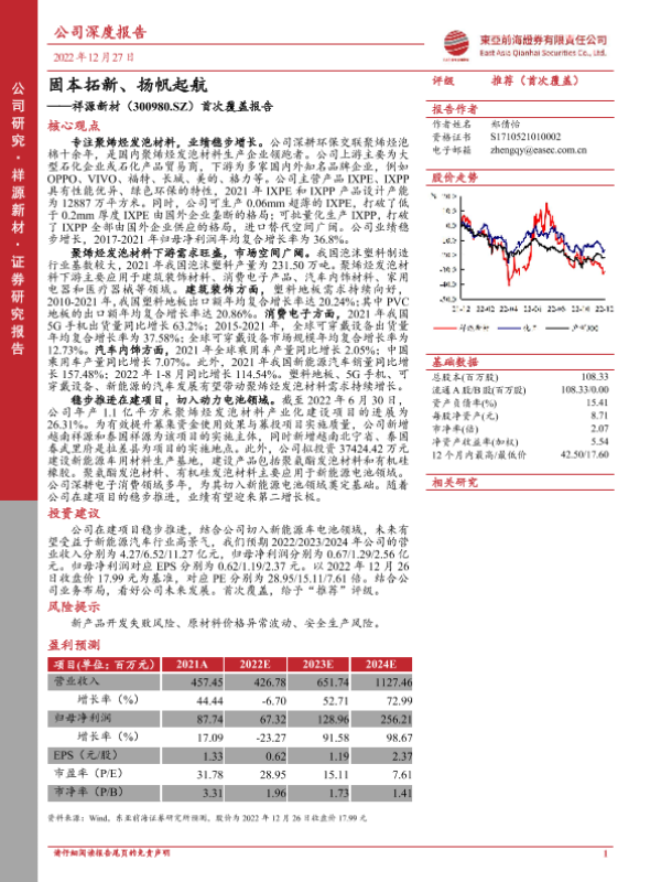 【东亚前海证券】【20221227】固本拓新、扬帆起航——祥源新材(300980.SZ)首次覆盖报告-27页 行业研究