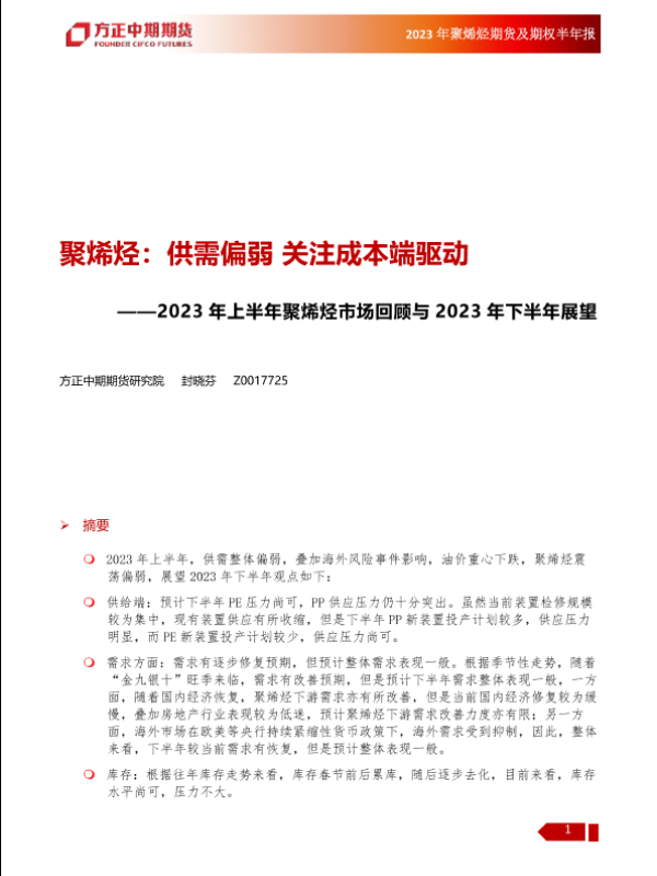 【方正中期期货】【20230703】2023年聚烯烃期货及期权半年报:供需偏弱,关注成本端驱动-28页 行业研究