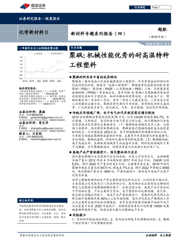 【国信证券】【20200910】新材料专题系列报告(四):聚砜:机械性能优秀的耐高温特种工程塑料-26页 行业研究