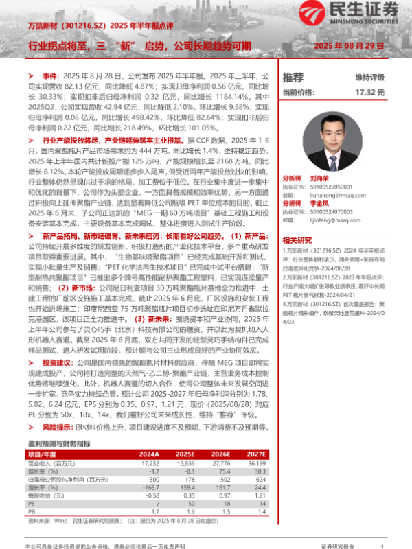 【民生证券】【20250829】万凯新材-行业拐点将至,三“新”启势,公司长期趋势可期-3页 证券期货研究报告
