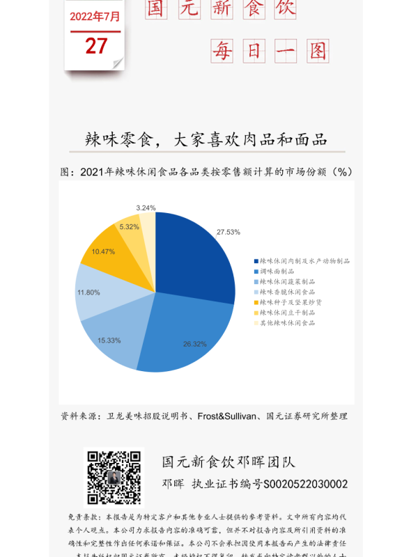 【国元证券】【20220727】国元新食饮每日一图:辣味零食,大家喜欢肉品和面品-1页 行业研究