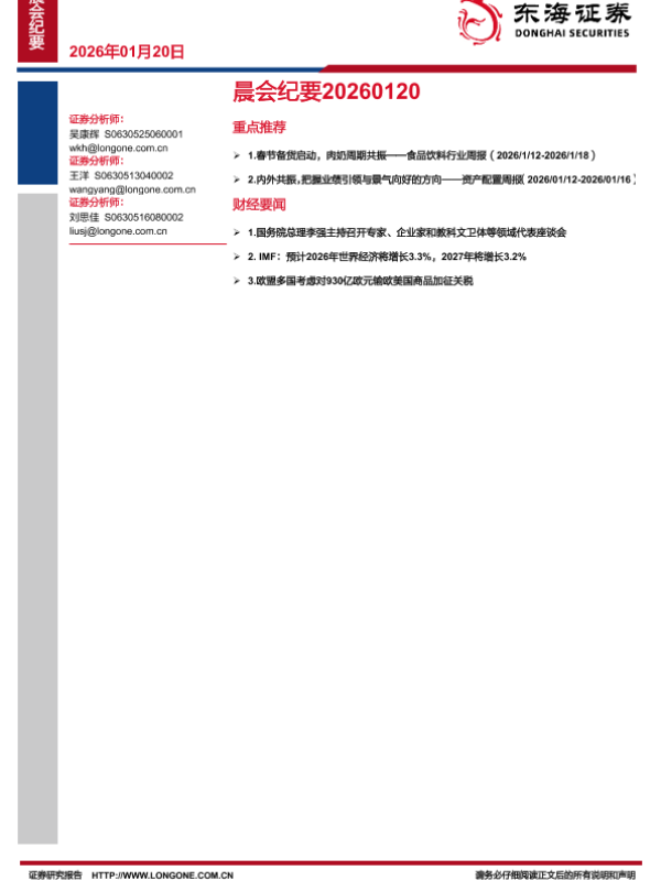 【东海证券】【202601】晨会纪要20260120-10页 会议纪要
