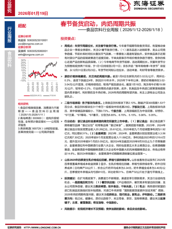 【东海证券】【202601】春节备货启动,肉奶周期共振——食品饮料行业周报(2026/1/12-2026/1/18)-11页 证券期货研究报告