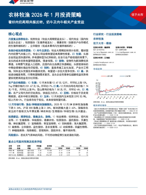 【国信证券】【202601】农林牧渔 2026年 1月投资策略 优于大市-28页 证券期货研究报告