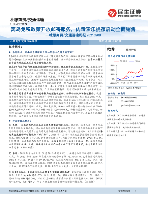 【民生证券】【20210208】离岛免税政策开放邮寄服务,肉毒素乐提葆启动全面销售-11页 行业研究