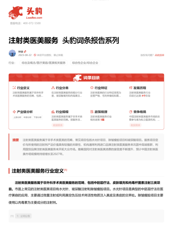 【头豹研究院】【2023】注射类医美服务 头豹词条报告系列-12页 行业研究