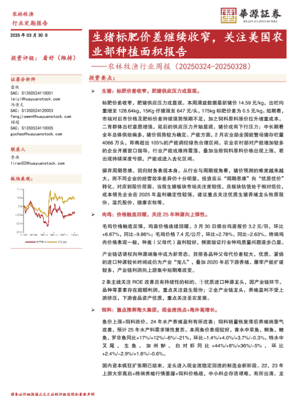 【华源证券】【20250330】20250330-华源证券-农林牧渔行业周报:生猪标肥价差继续收窄,关注美国农业部种植面积报告-18页 行业研究
