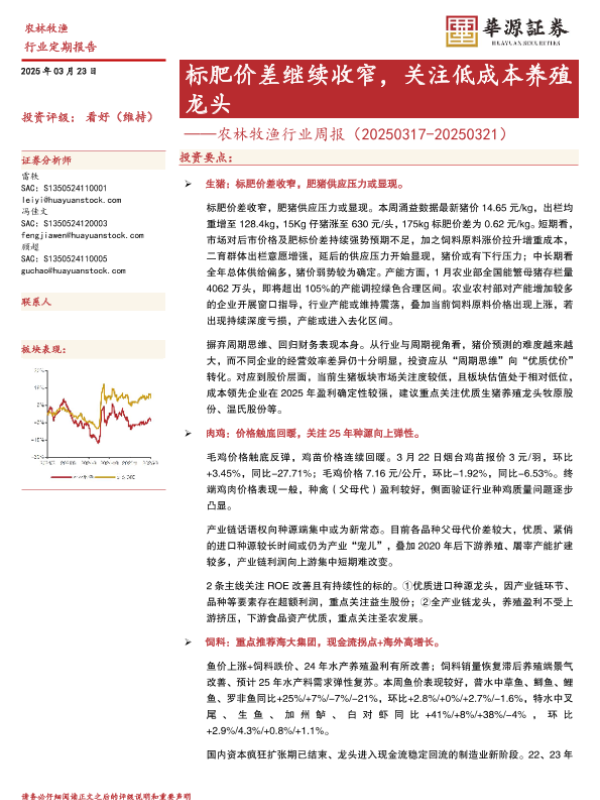 【华源证券】【20250323】农林牧渔行业周报:标肥价差继续收窄,关注低成本养殖龙头-18页 行业研究