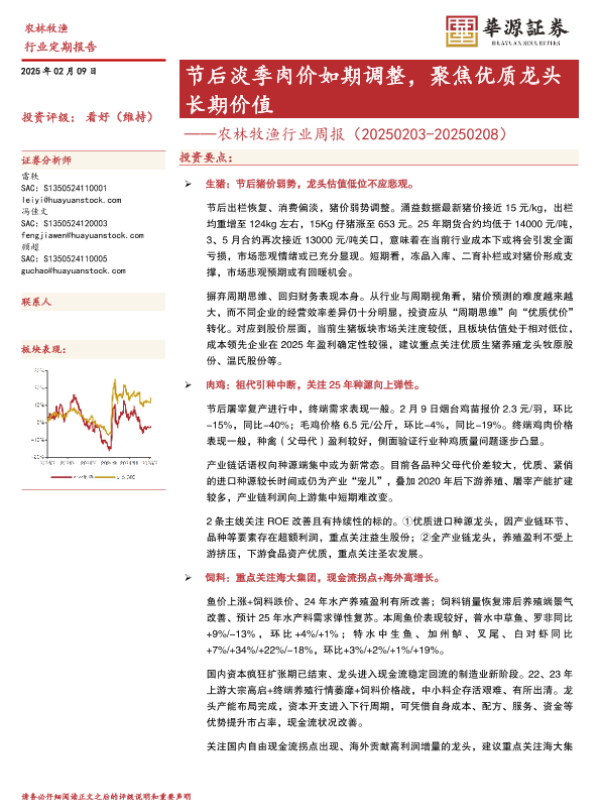 【华源证券】【20250209】20250209-华源证券-农林牧渔行业周报:节后淡季肉价如期调整,聚焦优质龙头长期价值-17页 行业研究