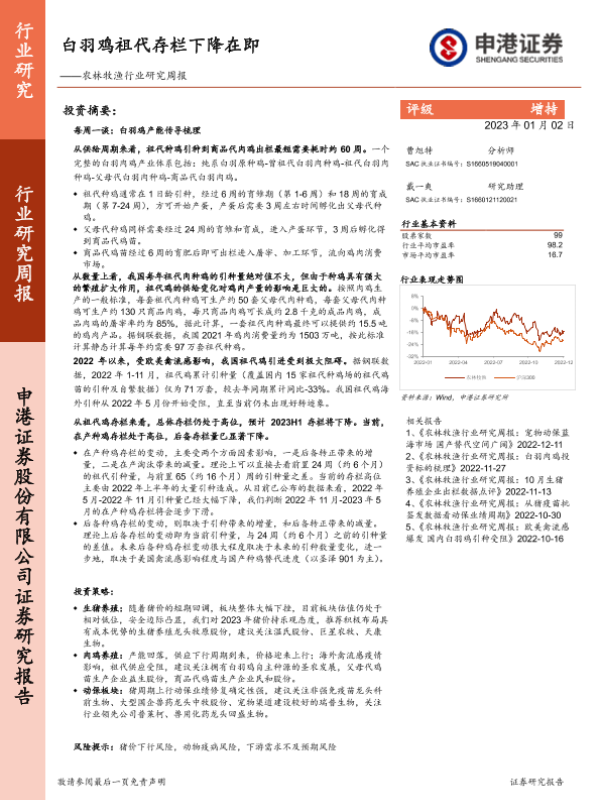 【申港证券】【20230102】20230102-申港证券-农林牧渔行业研究周报:白羽鸡祖代存栏下降在即-12页 行业研究