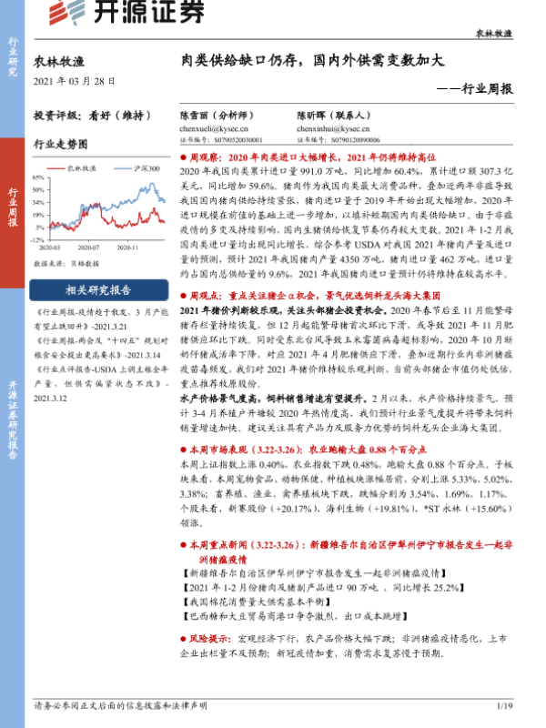 【开源证券】【20210328】20210328-开源证券-农林牧渔行业周报:肉类供给缺口仍存,国内外供需变数加大-19页 行业研究