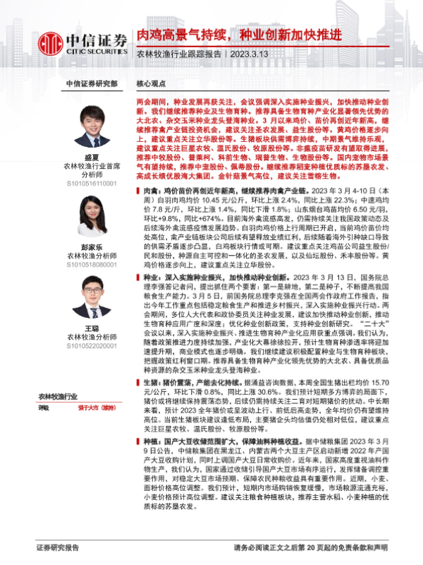 【中信证券】【20230313】农林牧渔行业跟踪报告:肉鸡高景气持续,种业创新加快推进-21页 行业研究