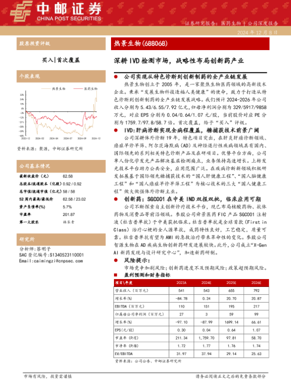 【中邮证券】【20241208】热景生物(688068)深耕IVD检测市场,战略性布局创新药产业-15页 行业研究