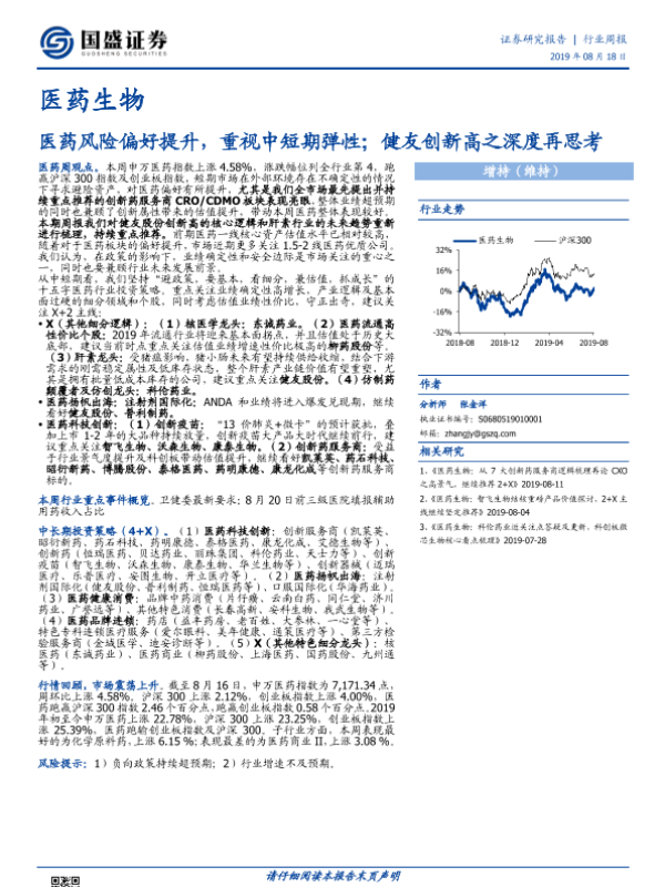 【国盛证券】【20190818】医药生物行业周报:医药风险偏好提升,重视中短期弹性,健友创新高之深度再思考-19页 行业研究