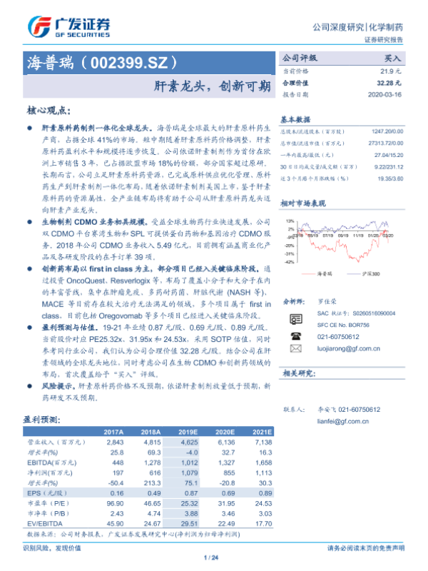 【广发证券】【20200316】20200316-广发证券-海普瑞-002399.SZ-肝素龙头,创新可期-24页 行业研究