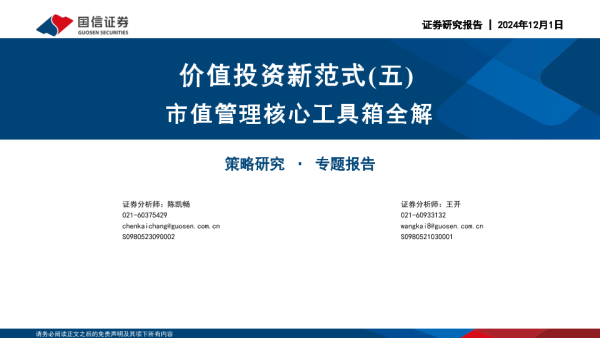 【国信证券】【20241201】价值投资新范式(五):市值管理核心工具箱全解-40页 行业研究