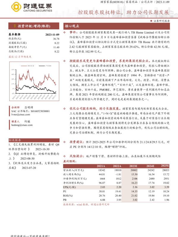 【财通证券】【20231109】控股股东股权转让_助力公司长期发展-3页 行业研究