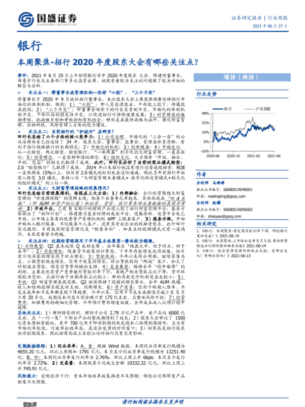 【国盛证券】【20210627】银行本周聚焦-招行2020年度股东大会有哪些关注点?-10页 会议纪要