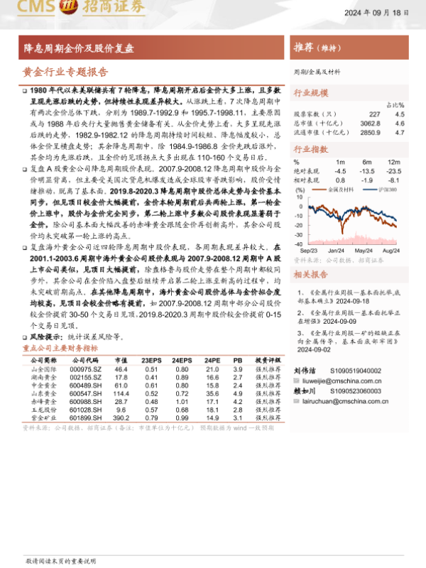 【海通证券】【20240918】黄金行业专题报告:降息周期金价及股价复盘-11页 行业研究