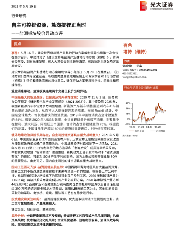 【光大证券】【20210519】有色-盐湖板块股价异动点评:自主可控锂资源,盐湖提锂正当时-3页 行业研究