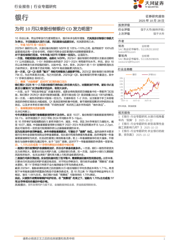 【天风证券】【202510】银行行业专题研究:为何10月以来股份制银行CD发力明显?-11页 证券期货研究报告
