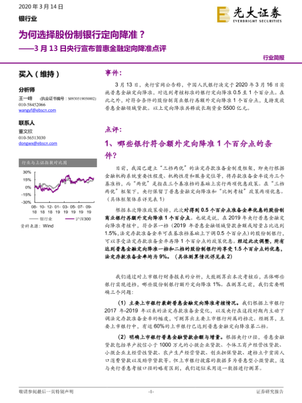 【光大证券】【20200314】3月13日央行宣布普惠金融定向降准点评:为何选择股份制银行定向降准?-6页 行业研究