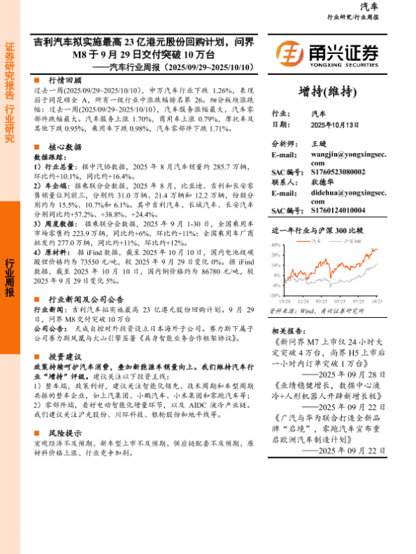 【甬兴证券】【202510】汽车行业周报(2025/09/29~2025/10/10)-12页 行业研究