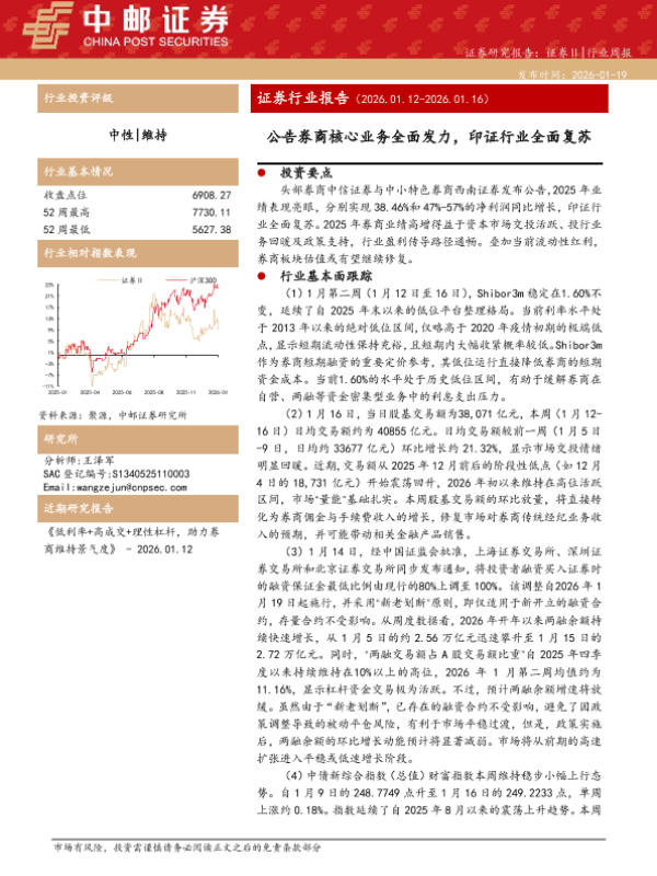 【中邮证券】【202601】证券行业报告:公告券商核心业务全面发力,印证行业全面复苏-12页 证券期货研究报告