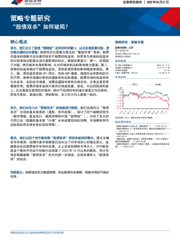 【国信证券】【20220321】策略专题研究:“股债双杀”如何破局?-15页 行业研究