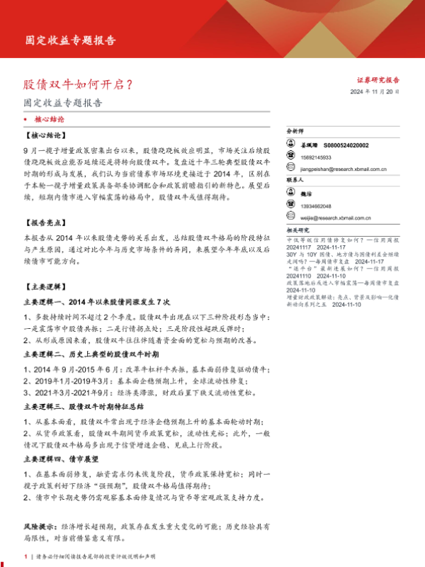 【西部证券】【20241120】固定收益专题报告:股债双牛如何开启?-16页 行业研究