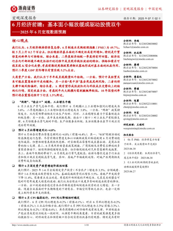 【浙商证券】【20250702】2025年6月宏观数据预测:6月经济前瞻,基本面小幅放缓或驱动股债双牛-18页 宏观策略