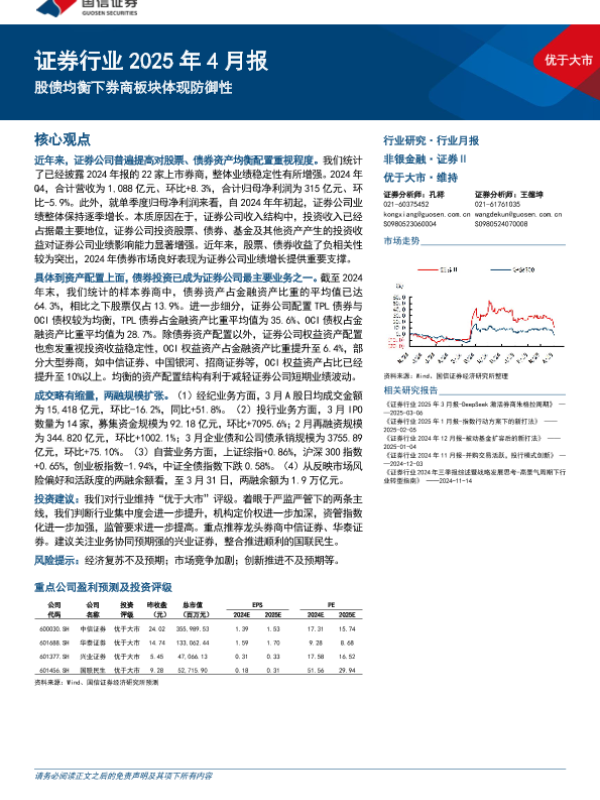 【国信证券】【20250408】证券行业2025年4月报:股债均衡下券商板块体现防御性-14页 行业研究