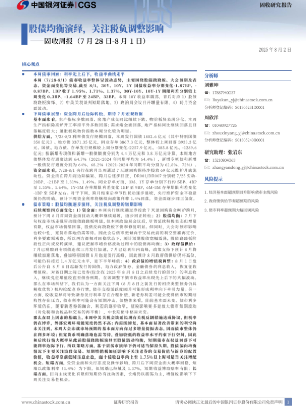 【银河证券】【20250802】固收周报:股债均衡演绎,关注税负调整影响-15页 证券期货研究报告