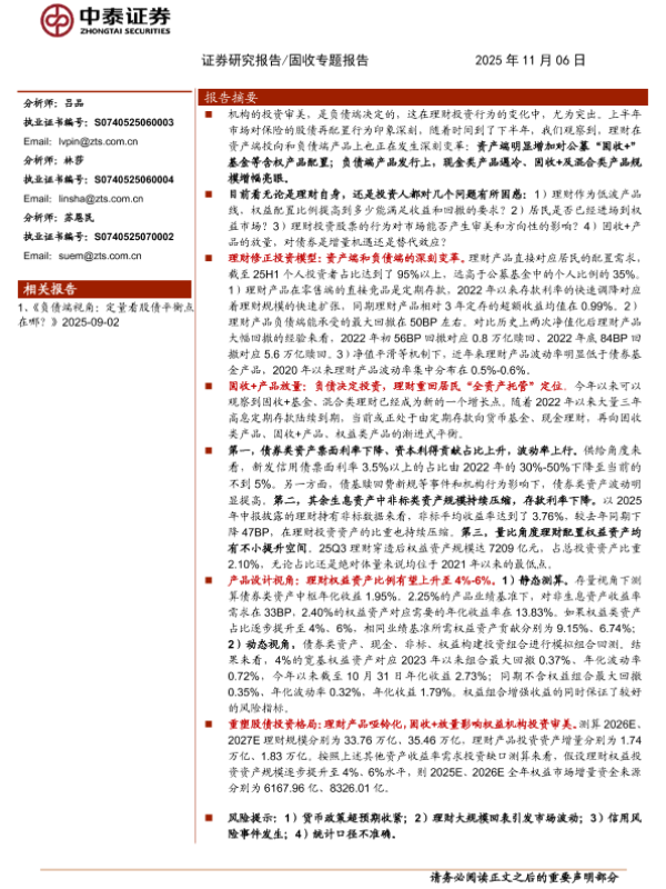 【中泰证券】【202511】负债端视角:理财将如何深刻改变股债格局?-15页 证券期货研究报告
