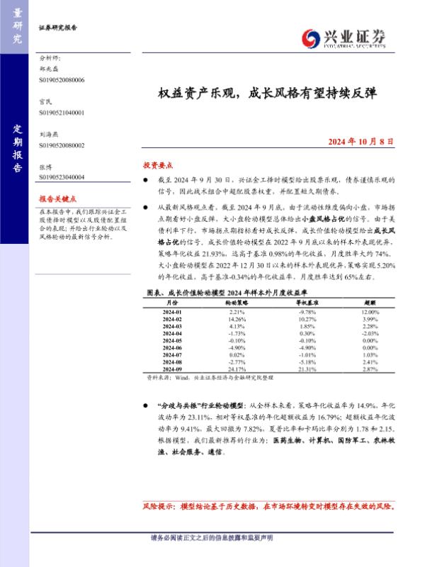 【兴业证券】【20241008】权益资产乐观,成长风格有望持续反弹-25页 行业研究